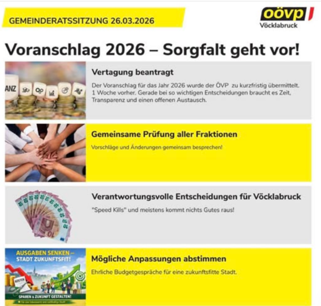 Gerade ein schwieriges Budget wie das Abgangsbudget 2026 erfordert die geistige Anstrengung vieler Köpfe. Das war bis dato nicht so gewährleistet, nur (absichtlich?) wenige lernten den Budgetinghalt kennen. Daher forderten wir erfolgreich eine Vertagung im Gemeinderat. Ab jetzt heißt es intensiv verhandeln und nachdenken.